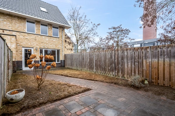 Vanuit de woonkamer is de diepe achtertuin te bereiken, met een (fietsen)berging en houten schuttingen aan drie zijden. Een achterom is er ook en er zijn twee terrassen gemaakt, waardoor dit huis ook heel geschikt is voor de zonliefhebber. Als je naar de buren kijkt, dan zie je dat een aanbouw mogelijk is. Dit geldt ook voor een dakkapel, om nog meer ruimte op de tweede verdieping te creëren.
