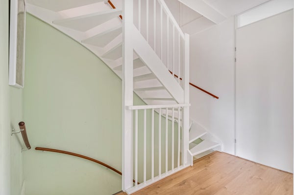 De overloop is meer dan de ruimte met de trap en de opstelling van de wasapparatuur. Het achterste deel kan worden gebruikt als werk-/studeerplek of als hobbyruimte, zonder dat je hiervoor een slaapkamer hoeft te gebruiken.