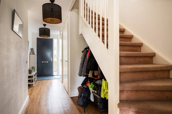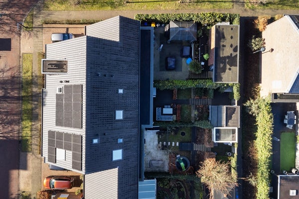 De groene achtertuin bereik je via de openslaande deuren in de woonkamer of via een praktische achterom en vormt een heerlijke plek om buiten te ontspannen. Dankzij de speelse hoogteverschillen in de tuin is er een sfeervol terras gecreëerd, waar je in alle rust kunt genieten van het buitenleven. Achter in de tuin staat een vrijstaande houten berging met overkapping, ideaal voor het stallen van fietsen en het opbergen van tuingereedschap. Tot slot is er in de straat ruime parkeergelegenheid, zodat je altijd comfortabel je auto kunt parkeren.