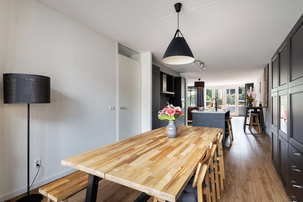 Op één van de mooiste locaties van het geliefde Enka-terrein staat deze uitzonderlijk royale gezinswoning met maar liefst 200 m² woonoppervlak. De woning aan Van den Boschlaan 3 in Ede geniet van een vrije ligging aan de voorzijde en biedt een combinatie van ruimte, comfort en duurzaamheid die je zelden tegenkomt. De woning is energiezuinig en voorzien van energielabel A+++, een warmtepomp, vloerverwarming en 14 zonnepanelen. Binnen word je verrast door een sfeervolle woonkeuken met spoeleiland en bar, een uitgebouwde woonkamer en maar liefst vijf royale slaapkamers. Je woont hier in een rustige straat in de populaire wijk op het Enka-terrein, bekend om zijn karakteristieke architectuur en groene omgeving. Binnen enkele minuten sta je in het bos (Landgoed Hoekelum), ideaal voor een ontspannen wandeling of een sportief hardlooprondje. Voor de dagelijkse boodschappen wandel je zo naar winkelcentrum Spindop, terwijl scholen zich eveneens op korte afstand bevinden. Met station Ede-Wageningen op loopafstand en de A12 om de hoek is de bereikbaarheid bovendien uitstekend. Nieuwsgierig geworden en wil je deze bijzondere woning zelf ervaren? Neem dan contact met ons op voor een bezichtiging. Je bent van harte welkom, we laten het je graag zien.