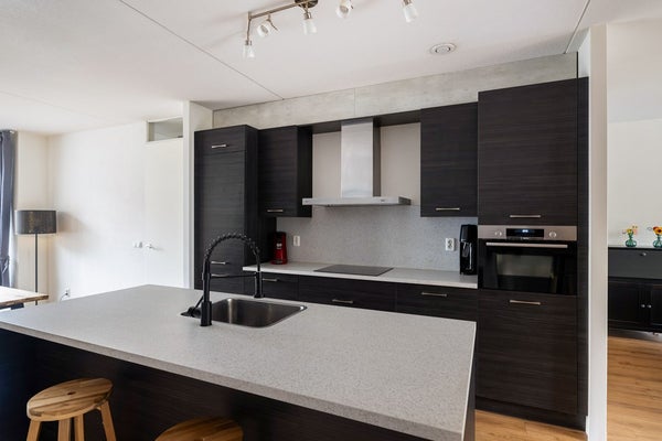 Via de entree stap je binnen in de hal, een prettige binnenkomst die direct toegang geeft tot de meterkast (met glasvezelaansluiting), een geheel betegelde toiletruimte (met wandcloset en fontein), de praktische berging met warmtepomp (2012), de trapopgang naar de 1e verdieping, de woonkeuken en woonkamer. De uitgebouwde woonkamer is royaal van opzet en nodigt uit tot het creëren van een comfortabele en ruime zithoek. Dankzij de openslaande deuren staat deze ruimte in directe verbinding met het terras en de tuin, waardoor binnen en buiten moeiteloos in elkaar overlopen. De strakke wandafwerking en de pvc-vloer met aangename vloerverwarming zorgen voor een verzorgde uitstraling. Aan de voorzijde van de woning, in het verlengde van de woonkamer, bevindt zich de woonkeuken. Het gezellige spoeleiland met bar vormt het hart van de ruimte – de perfecte plek om ’s ochtends rustig van een kop koffie te genieten of samen te komen tijdens het koken. De keuken is uitgerust met diverse inbouwapparatuur, waaronder een inductiekookplaat met afzuigkap, koelkast, vriezer en een combi oven/magnetron. Dankzij de erker aan de voorzijde is er volop ruimte voor een royale eethoek, waar je lange diners kunt organiseren.