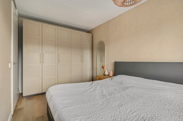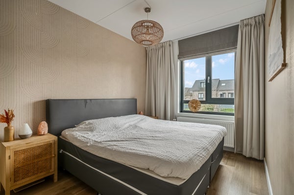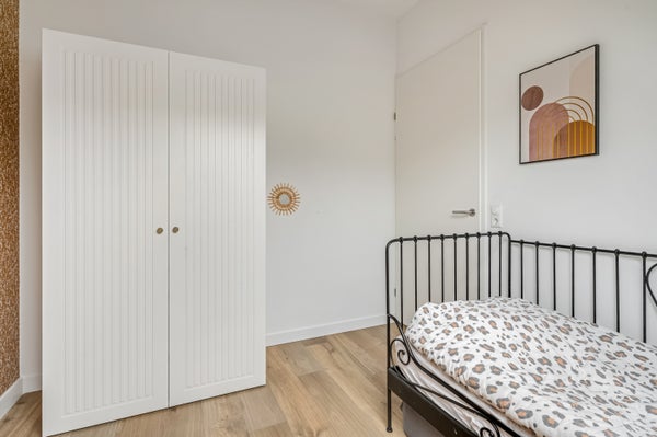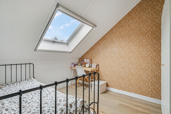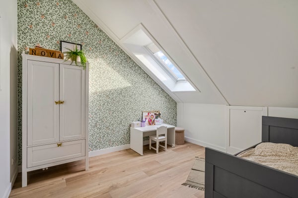 Zowel de slaapkamer aan de voor- als achterzijde heeft een groot dakraam en veel sfeer. Beide kamers zijn in gebruik als kinderkamer, met een mooie vloer en behang op een van de wanden. Verbouwen hoeft niet, dus je kunt al snel gaan inrichten...