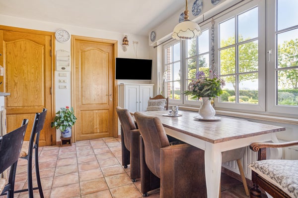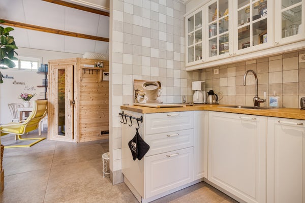 Deze vrijstaande, luxe afgewerkte woning ligt nabij Eede en is momenteel in gebruik als een succesvolle Bed & Breakfast. Op een mooie landelijke locatie, omringd door rust en groen, biedt deze woning de perfecte combinatie van comfortabel wonen en kleinschalige gastvrijheid. De indeling van de begane grond omvat een ruime hal, een royale woonkamer met gashaard en keuken met Belgisch hardstenen werkblad en hoogwaardige inbouwapparatuur. Tevens is er een slaapkamer en een luxe badkamer. De eerste verdieping heeft drie slaapkamers, een praktische washok en een badkamer met ligbad en douche. Het saunahuis, gerealiseerd in 2020, biedt ontspanning met twee sauna's en eigen faciliteiten. De grote garage en de charmante tuin met vijver en terrassen maken het geheel compleet. Met 28 zonnepanelen en een energielabel A is dit een duurzame thuis.
