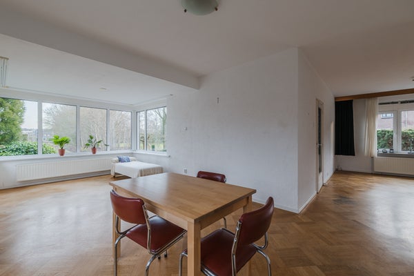 Op een prachtige plek staat deze hoekwoning met aangebouwde serre, garage en carport. De woning is goed onderhouden aan de buitenkant, met kunststof kozijnen en HR++ glas, maar binnen is enige modernisatie gewenst. Met vijf slaapkamers en twee badkamers biedt het huis veel ruimte en mogelijkheden. Door één badkamer te vernieuwen en de andere te verwijderen, creëer je zelfs een zesde slaapkamer. De massieve parketvloer beneden kan nog meerdere keren geschuurd worden. De woning omvat 154 m² woonoppervlakte, een perceel van 395 m² en is gelegen aan een rustige weg in een woonwijk. De achtertuin is 80 m² groot en ligt op het noordoosten, met een achterom. Tevens wordt het verwarmd door een C.V.-ketel uit 2013.