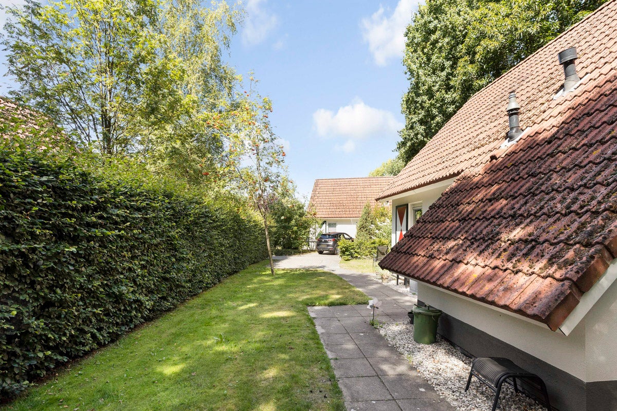Tegen de bosrand staat deze stenen recreatiewoning met een perceel van 763 m2 eigen grond. De woning heeft een woonoppervlakte van 67 m2, met op de eerste verdieping twee slaapkamers. Op de begane grond vindt u de ruime L-vormige woonkamer met open keuken en een terras dat privacy biedt. De badkamer, met douche en wastafel, is ook op de begane grond. Het park biedt veel recreatieve mogelijkheden en de brinkdorpen Norg en Roden zijn goed bereikbaar. De woning is volledig geïsoleerd, met vloer-, muur- en dakisolatie, en dubbele beglazing. Verwarming gebeurt via de C.V.-ketel en er is een aangebouwde stenen berging. Dit is een luxe woning, gebouwd in 2002, en is niet geschikt voor permanente bewoning. Aanvaarding is in overleg.