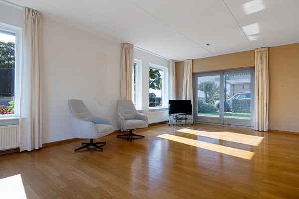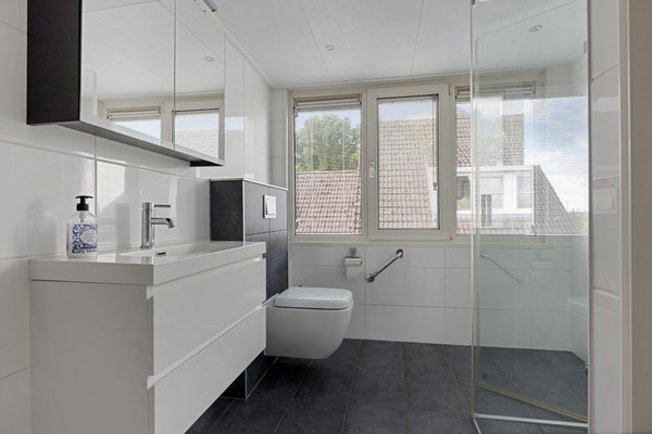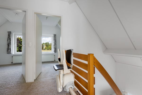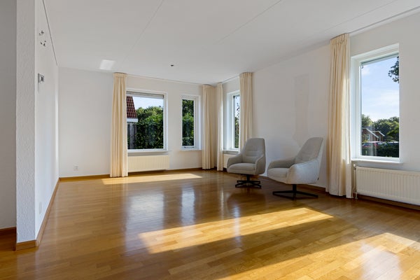 Indeling: De begane grond omvat een entree met meterkast en toilet, een royale L-vormige woonkamer van ca. 47m² met schuifpui naar de tuin, een open keuken van ca. 10m² met inbouwapparatuur, een bijkeuken van ca. 6m², en de garage van ca. 18m². De eerste verdieping heeft 4 slaapkamers en een badkamer van ca. 5,5m². Er is bovendien een zolderruimte van ca. 25m². Deze woning biedt rust en ruimte en is elke dag te bewonderen.