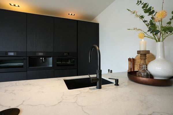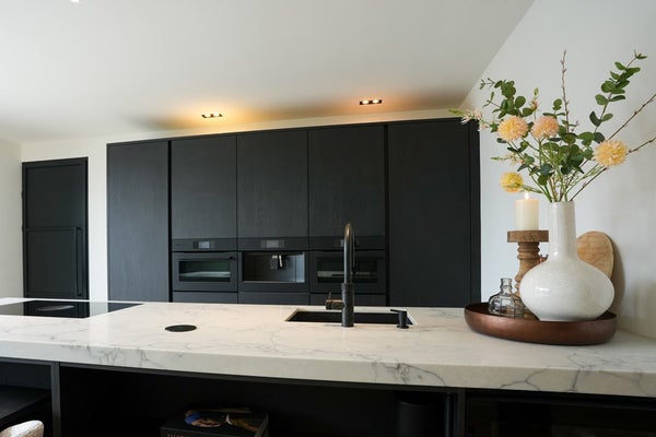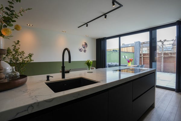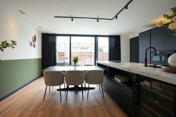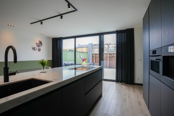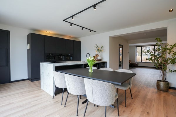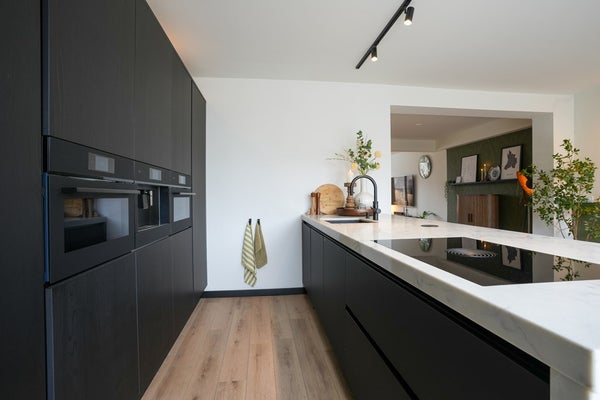 De zeer luxe, nieuwe keuken vormt het bruisende hart van het huis – een plek waar koken, borrelen en samenkomen moeiteloos in elkaar overlopen. .