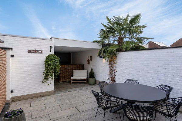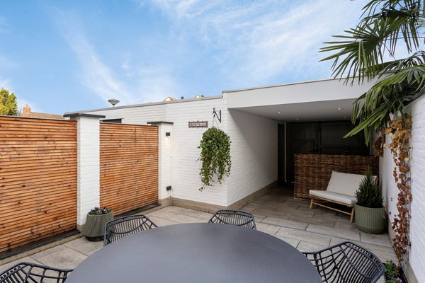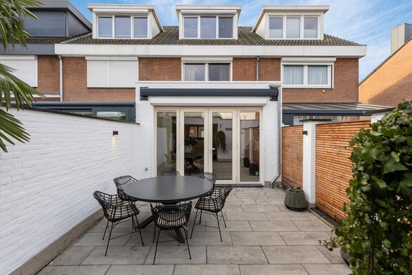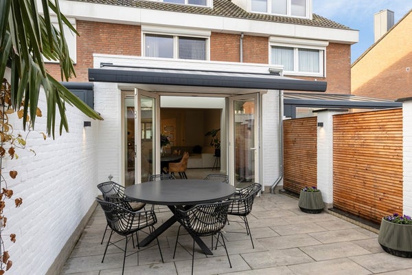 De woning beschikt over een fraaie, sfeervolle en onderhoudsvriendelijke achtertuin, welke bereikbaar is via de deuren in de leefruimte en via een achterom. De tuin is volledig omheind en aangelegd met een ruim terras en diverse plantenborders. Direct grenzend aan de leefruimte bevindt zich een elektrisch uitschuifbaar zonnescherm, waardoor u hier vrijwel het gehele jaar door comfortabel kunt zitten.
