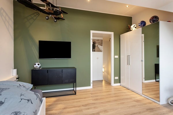 • Slaapkamer 4: Deze slaapkamer is ca. 16,5 m² groot en voorzien van een brede dakkapel, waardoor de ruimte aangenaam licht en ruimtelijk aanvoelt. Tevens is hier airconditioning aanwezig, wat zorgt voor extra comfort tijdens warme dagen.