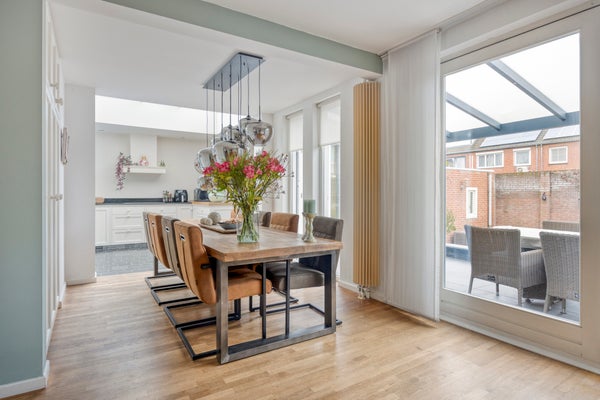 - De tussenwoning heeft een woonoppervlakte van 188 m² en beschikt over 7 kamers, waarvan 5 slaapkamers;