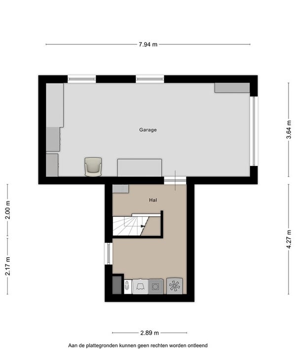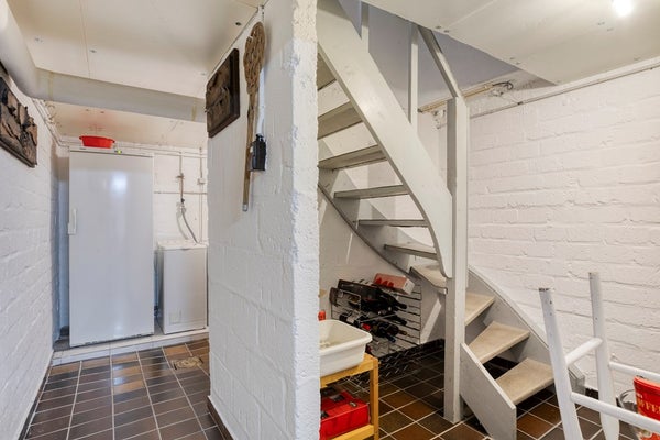 Via de trap in de kleinere gang bereikt u het souterrain. Vanuit hier heeft u toegang tot zowel de kelderruimte als de garage.
