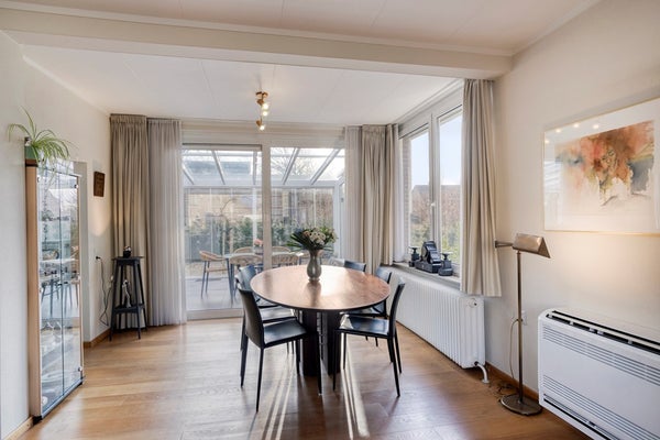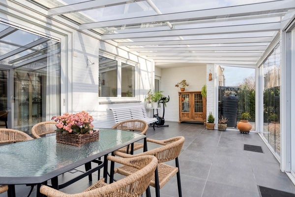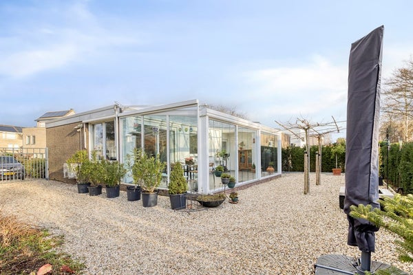 De woning beschikt over een royale en lichte serre van circa 30 m², grenzend aan zowel de woon- en eetkamer als de keuken. De serre is bereikbaar via de schuifpui in de woonkamer en via een deur vanuit de entree. Dankzij de grote raampartijen en schuifdeur ontstaat hier een prachtige lichtinval en een directe verbinding met de tuin. Dit maakt de serre tot een heerlijke plek om het hele jaar door te genieten van het buitengevoel.