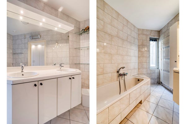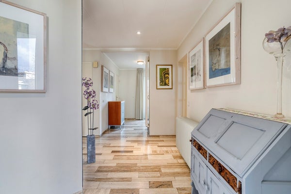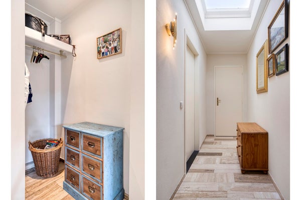 - De tussenhal is aangenaam licht dankzij de lichtstraat in het plafond en biedt toegang tot de twee andere slaapkamers, de tweede badkamer en de toiletruimte:
