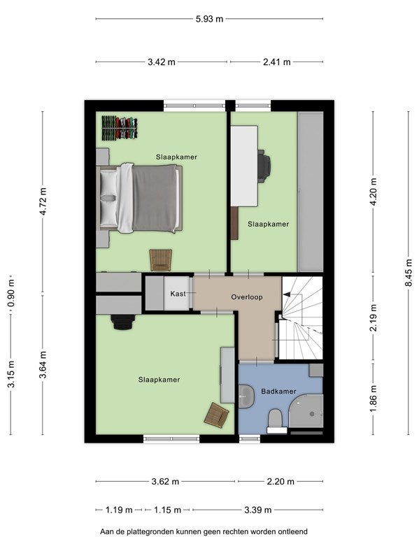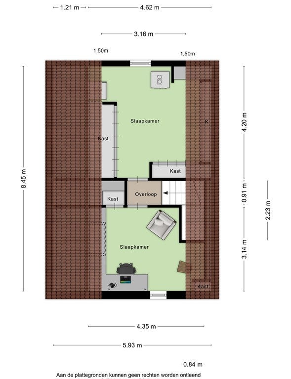 - De tussenwoning heeft een woonoppervlakte van 126 m² en beschikt over 6 kamers, waarvan 5 slaapkamers;