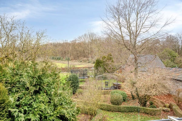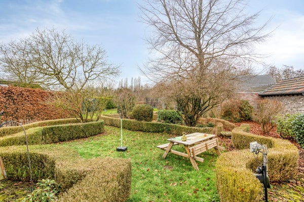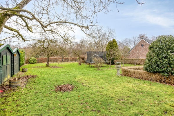 De achtertuin is werkelijk een parel: ruim van opzet met uitzicht op het achtergelegen weiland. De huidige eigenaar heeft de tuin sfeervol ingericht met diverse borders, terrassen en knusse hoekjes. In het midden van de tuin staat een charmant prieeltje, perfect voor zomerse momenten.