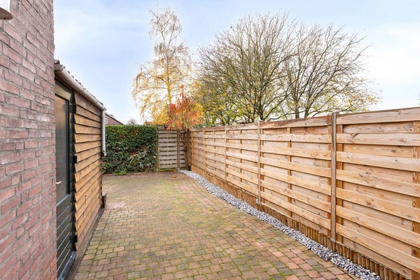 De woning beschikt over een volledig omsloten, onderhoudsvriendelijke tuin, toegankelijk vanuit de bijkeuken en via de achteringang. De tuin is onderhoudsvriendelijk en biedt veel mogelijkheden om deze naar eigen wens in te richten. Bovendien is er een praktische berging aanwezig van ca. 6,5 m², ideaal voor het opbergen van tuingereedschap, fietsen of andere materialen.