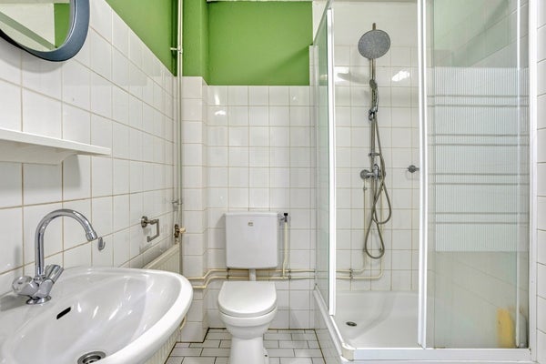 • Badkamer: De net verzorgde en betegelde, badkamer is ca. 3,5 m² groot en is voorzien van een douchecabine, een wastafel en een staand closet.