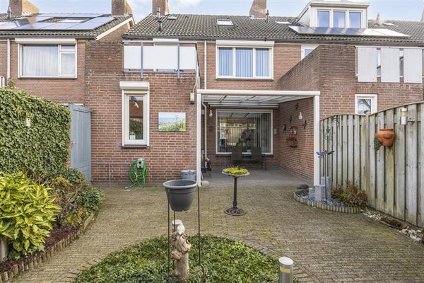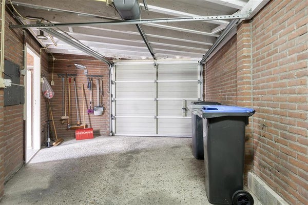 De achtertuin is diep, verzorgd en gelegen op het westen. Dat betekent zon in de middag en avond, precies wanneer je thuis bent. De tuin biedt voldoende ruimte voor spelende kinderen, een loungeset of een lange eettafel voor zomerse avonden. De achterom maakt de tuin praktisch in gebruik, bijvoorbeeld voor fietsen of tuinonderhoud. Aan de achterzijde bevindt zich een uitgebouwde stenen berging die direct toegang geeft tot de garage. Deze garage is voorzien van een elektrische roldeur en elektra, wat zorgt voor extra gemak en veiligheid. Of je de garage gebruikt voor de auto, opslag of als hobbyruimte, de mogelijkheden zijn veelzijdig.