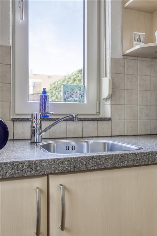 De woonkamer is opvallend licht dankzij de grote raampartijen aan zowel de voor- als achterzijde. De lichte vloer versterkt dit effect en zorgt voor een rustige basis die makkelijk te combineren is met verschillende woonstijlen. Aan de achterzijde is de woning uitgebouwd, waardoor de keuken extra ruim is opgezet. De keuken sluit naadloos aan op de serre, een fijne overgang tussen binnen en buiten. Of het nu voorjaar is of nazomer, dit is een plek die je automatisch vaker gaat gebruiken dan je vooraf denkt.VERDIEPINGEN MET TOEKOMST