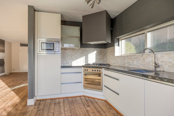 Aan de rustige groene rand van het moderne Blixembosch-Oost ligt Nabucco 25, een ruime hoekwoning van 101 m². Bij binnenkomst tref je een verzorgde hal met een garderobekast. De L-vormige woonkamer met houten vloer is licht en biedt een directe verbinding met de achtertuin via een schuifpui. De open keuken is van alle gemakken voorzien, ideaal voor een uitgebreid diner.