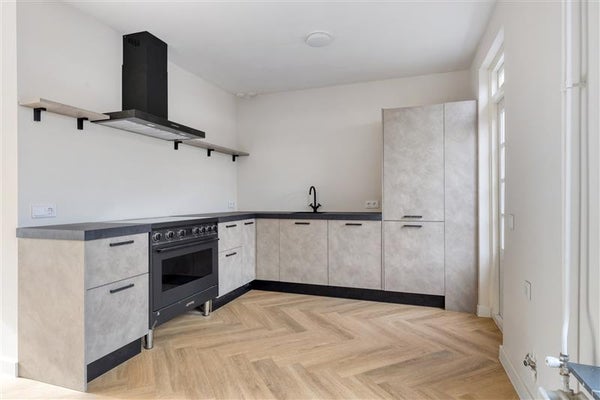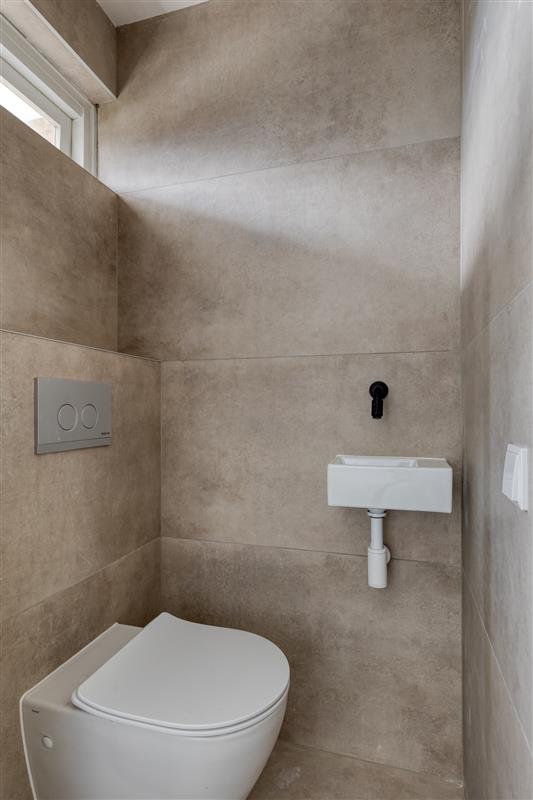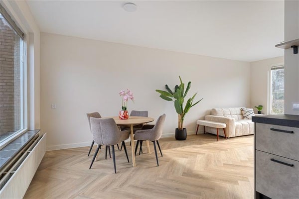 De woonkamer is ruim opgezet en profiteert van aangename lichtinval. De indeling maakt het eenvoudig om een duidelijke scheiding te creëren tussen zit- en eetgedeelte. De sfeer is modern en neutraal; een solide basis die je naar eigen smaak kunt inrichten. Aan de achterzijde ligt de keuken. De opstelling is praktisch en doordacht, met voldoende werkruimte voor dagelijks gebruik. Hier bereid je maaltijden terwijl je in contact blijft met het gezin of je gasten. De directe relatie met de leefruimte versterkt het gevoel van openheid.