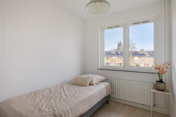 Op de eerste verdieping bevinden zich drie slaapkamers. De maatvoering is efficiënt; iedere kamer is bruikbaar en goed indeelbaar. Twee slaapkamers aan de achterzijde bieden rust en privacy, terwijl de kamer aan de voorzijde zich uitstekend leent als kinderkamer of thuiswerkplek. De badkamer is modern en functioneel, met douche, toilet en wastafel in een tijdloze uitvoering.