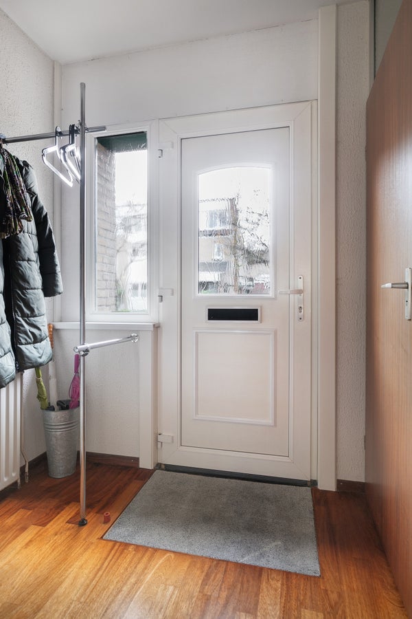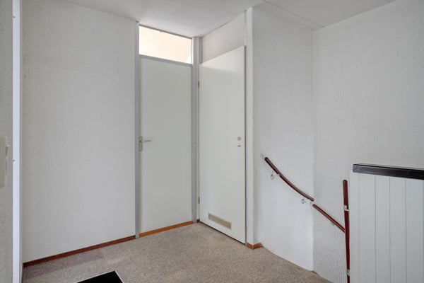 De hal is voorzien van een parketvloer en biedt toegang tot de kruipruimte, het toilet, de garage en de woonkamer. Vanuit de hal is tevens de meterkast bereikbaar.
