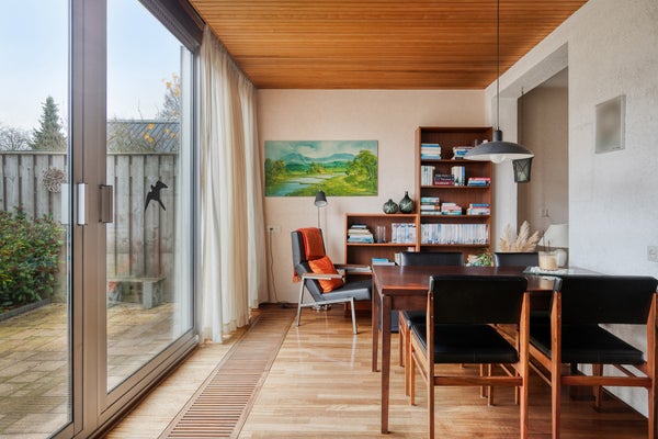 De woonkamer is diep en ruim. Onder de trap bevindt zich een trapkast die extra bergruimte biedt. De ruimte staat in open verbinding met de keuken. Aan de achterzijde zorgt een grote pui voor veel lichtinval en een directe doorgang naar de tuin.