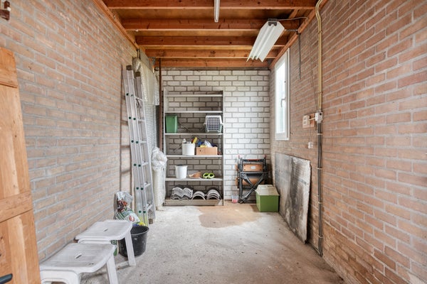 De garage is geschikt voor het plaatsen van één auto en is voorzien van een elektrische deur. Er is een raam met dubbel glas aanwezig.