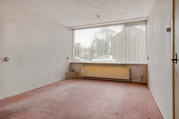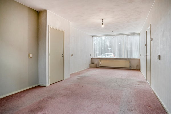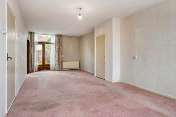 De woonkamer is ruim en biedt voldoende plaats voor een zit- en eetgedeelte. Grote raampartijen aan de voorzijde en openslaande deuren aan de achterzijde zorgen voor veel lichtinval en toegang tot de tuin. De ruimte is voorzien van een inbouwkast en vloerbedekking. Vanuit het eetgedeelte is er tevens toegang tot de keuken.