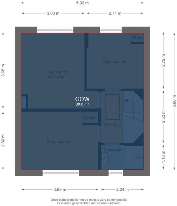 - De hoekwoning heeft een woonoppervlakte van 92 m² en beschikt over 4 kamers, waarvan 3 slaapkamers;