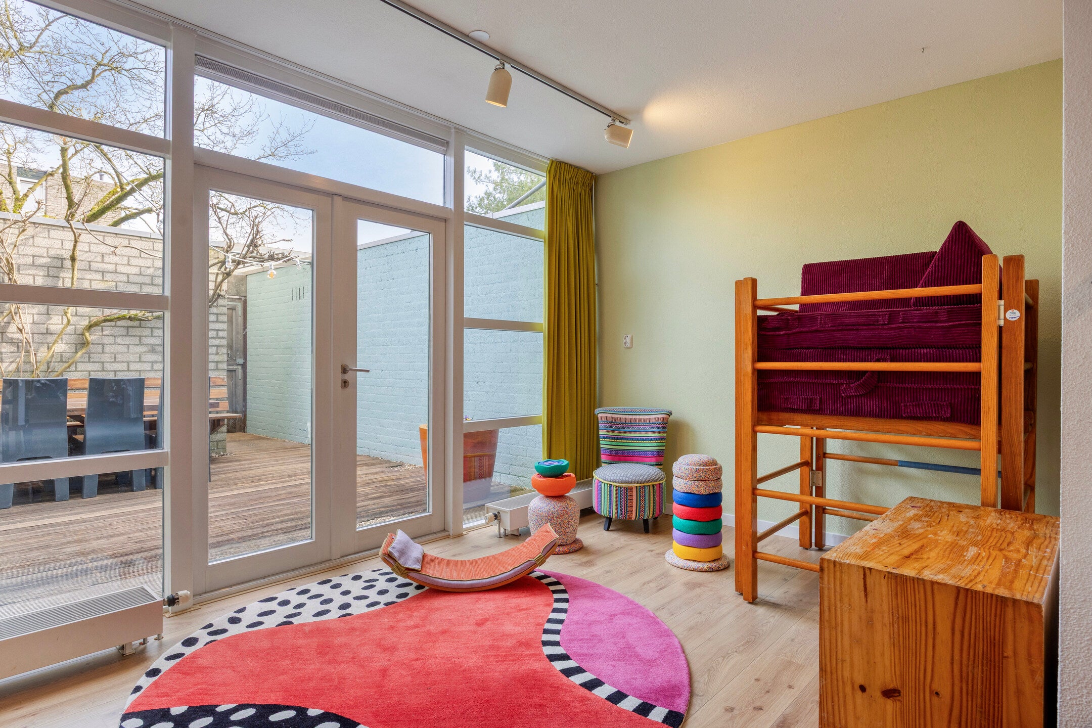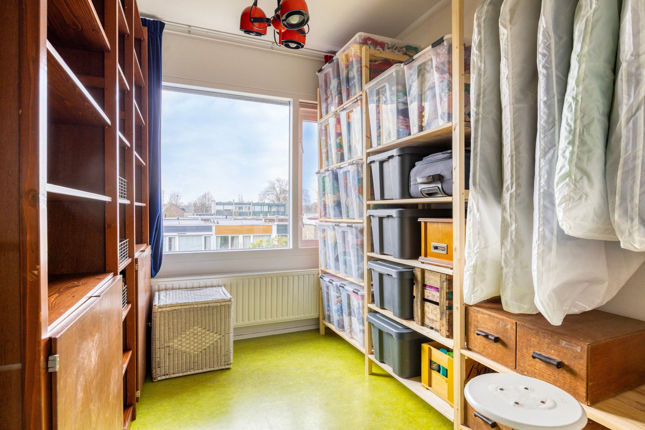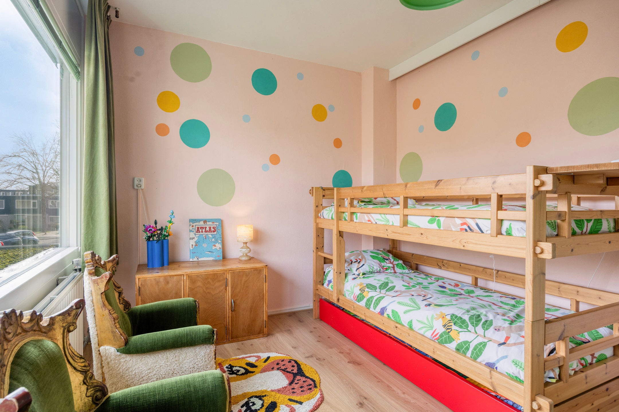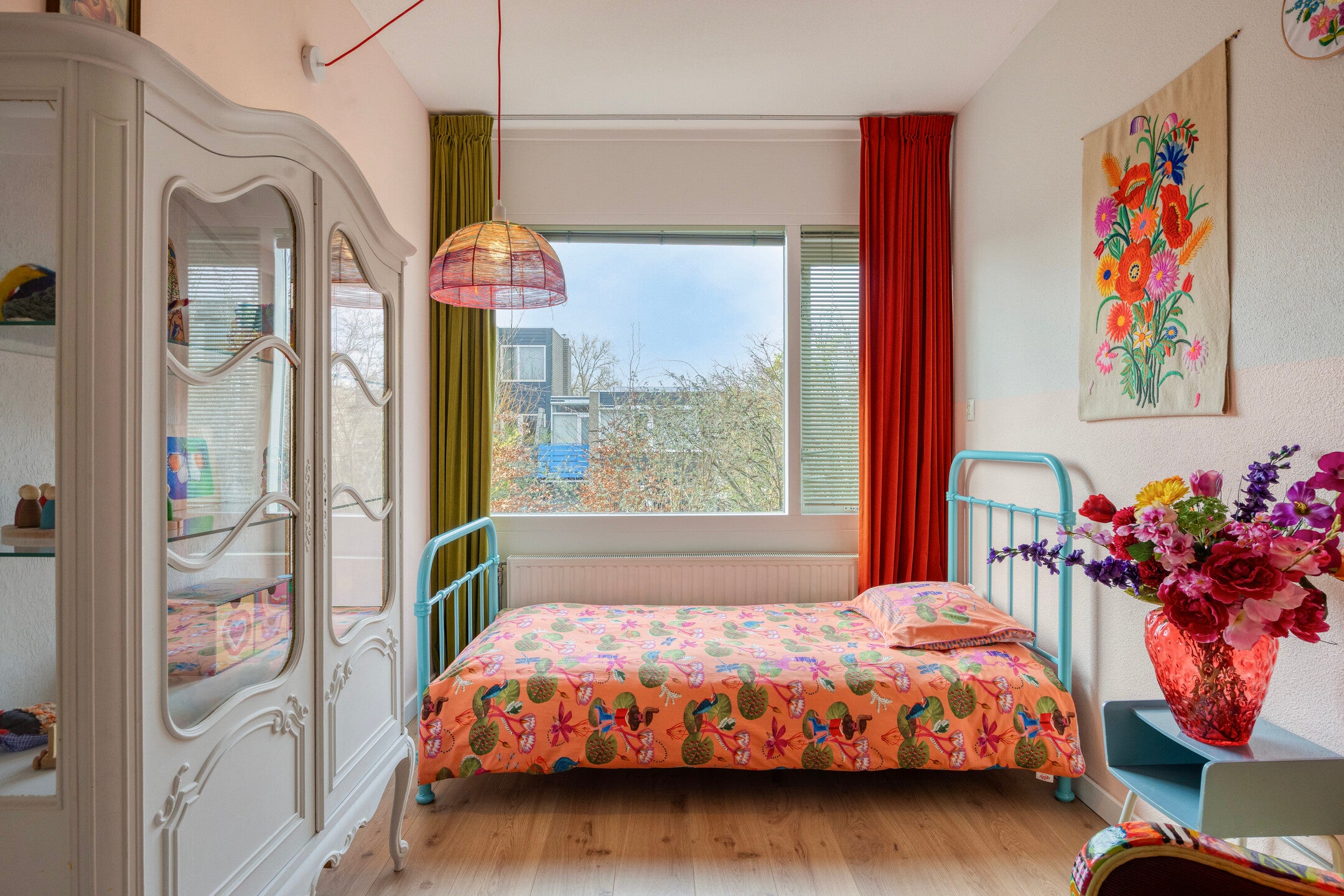 Deze creatief uitgebouwde tussenwoning in de kindvriendelijke wijk Geestenberg biedt met maar liefst zes slaapkamers veel ruimte voor een groot gezin. Op de begane grond ligt de royale woonkeuken, die door de lichtstraat en dubbele deur naar de patiotuin veel lichtinval heeft. De gezellige woonkamer met grote raampartijen leidt naar de verzorgde achtertuin op het westen, compleet met terrasoverkapping. Op beide verdiepingen zijn er badkamers, terwijl de tweede verdieping beschikt over een ruime slaapkamer met balkon. De woning is gelegen aan een autovrij plein, dichtbij supermarkten en wandelgebied. Met een woonoppervlakte van 166 m² en energielabel A is deze woning uiterst geschikt voor gezinnen.