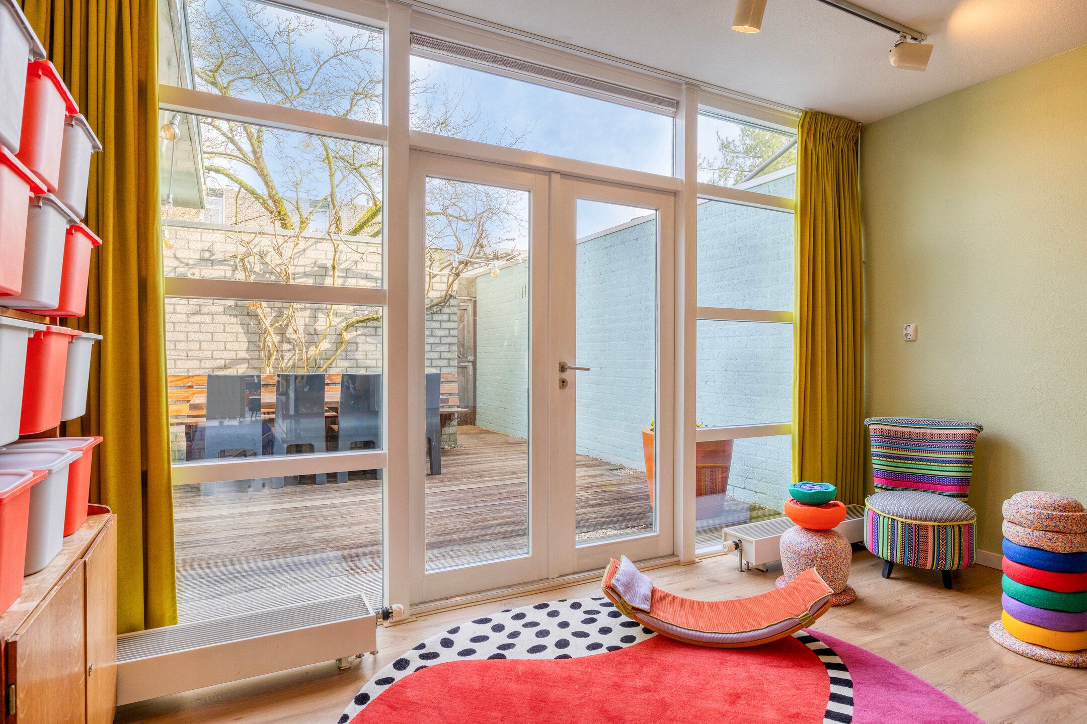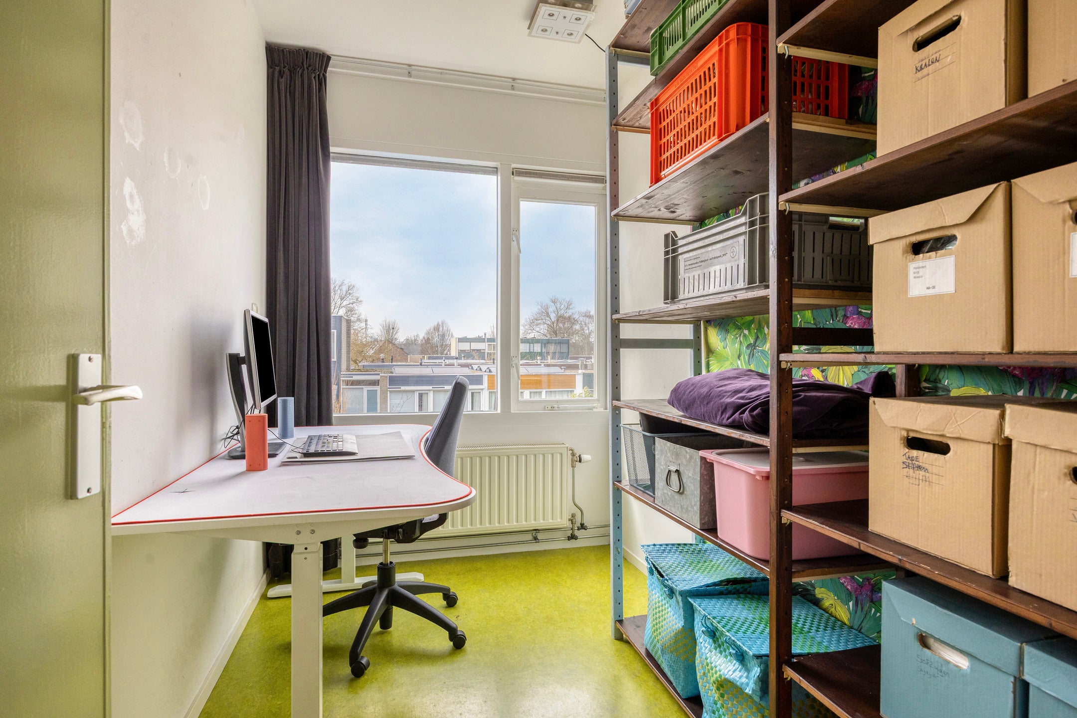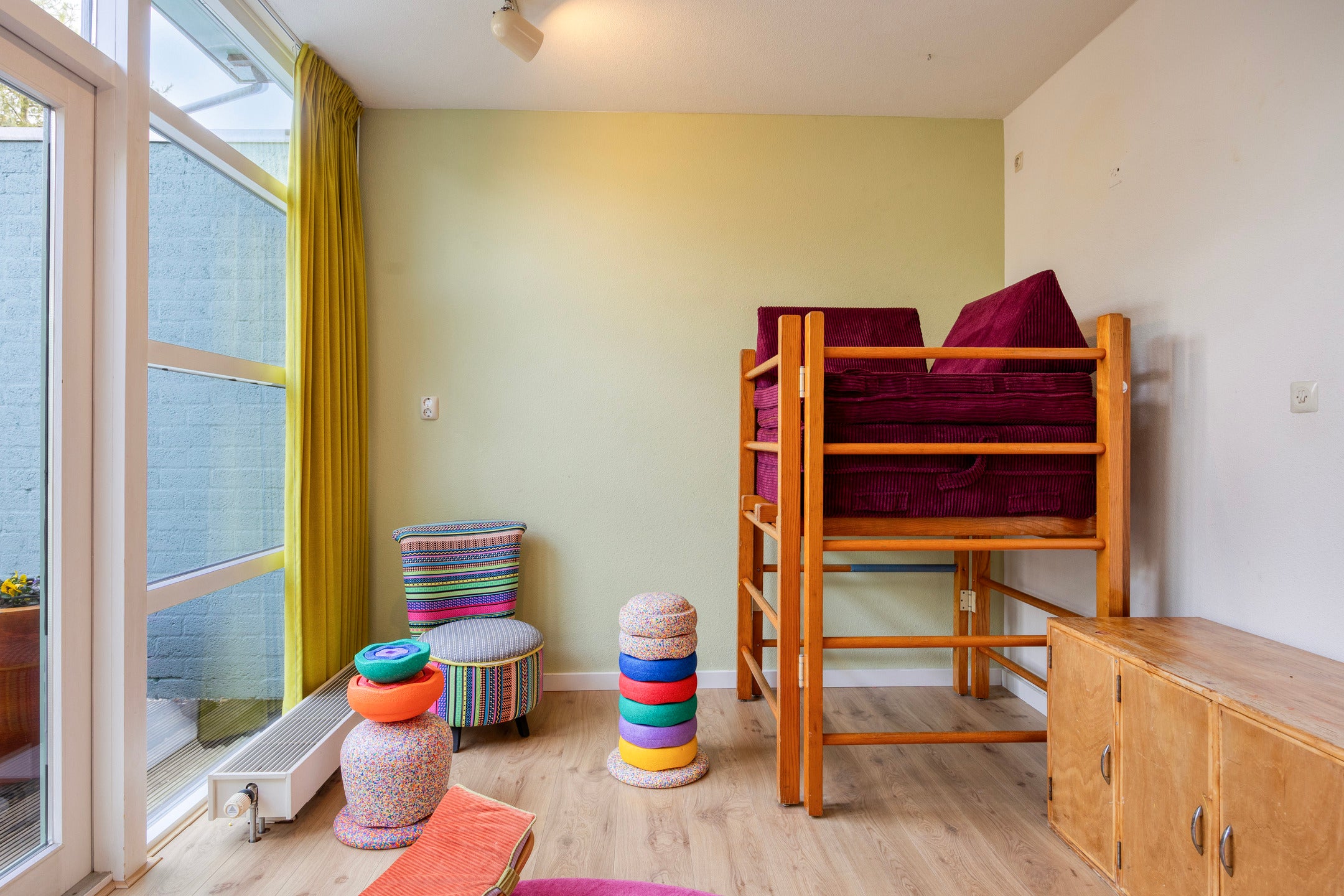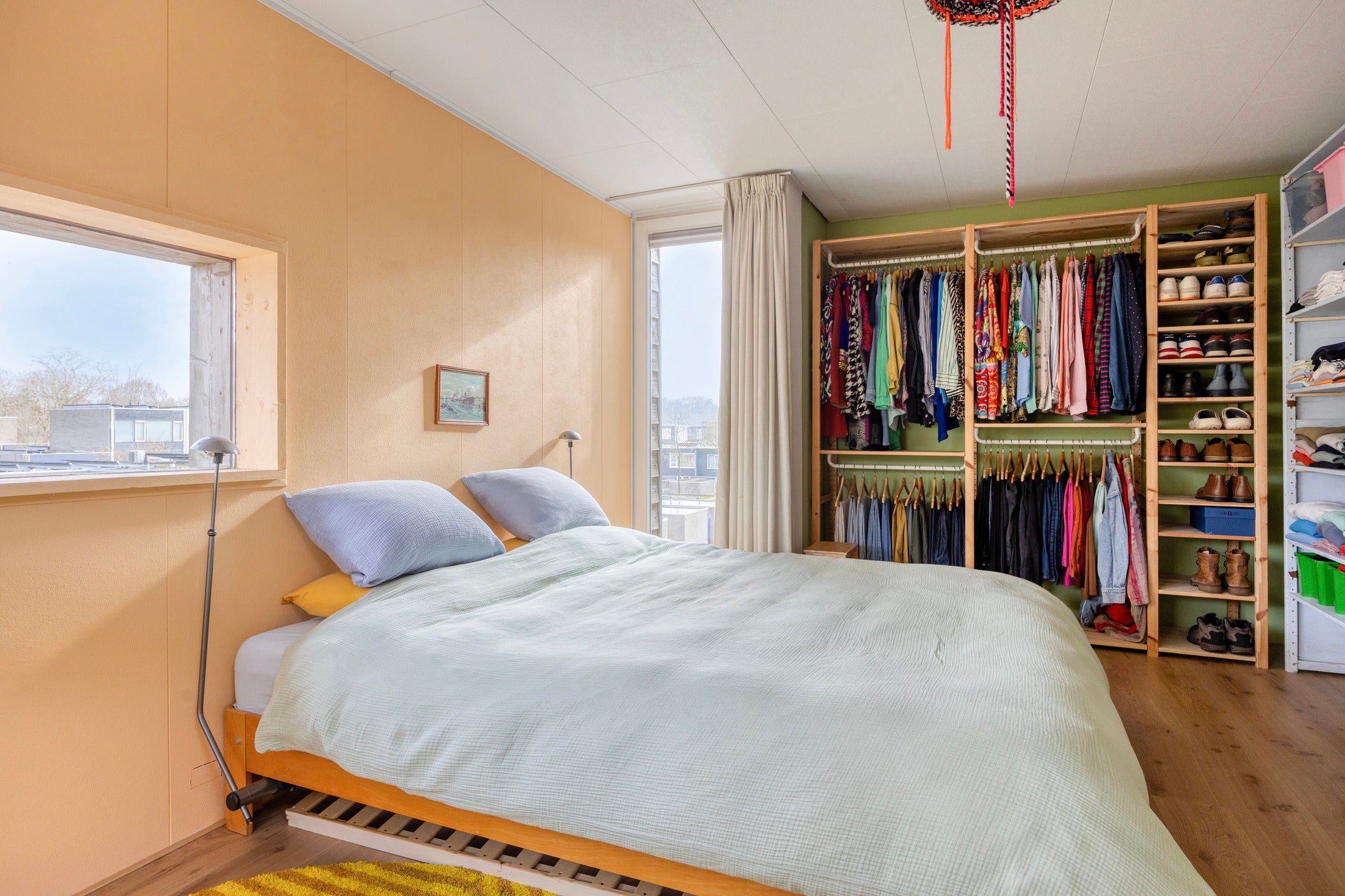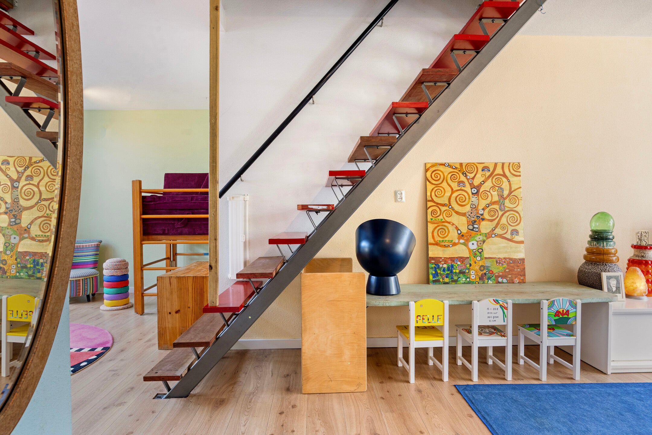 Deze creatief uitgebouwde tussenwoning in de kindvriendelijke wijk Geestenberg biedt met maar liefst zes slaapkamers veel ruimte voor een groot gezin. Op de begane grond ligt de royale woonkeuken, die door de lichtstraat en dubbele deur naar de patiotuin veel lichtinval heeft. De gezellige woonkamer met grote raampartijen leidt naar de verzorgde achtertuin op het westen, compleet met terrasoverkapping. Op beide verdiepingen zijn er badkamers, terwijl de tweede verdieping beschikt over een ruime slaapkamer met balkon. De woning is gelegen aan een autovrij plein, dichtbij supermarkten en wandelgebied. Met een woonoppervlakte van 166 m² en energielabel A is deze woning uiterst geschikt voor gezinnen.