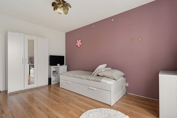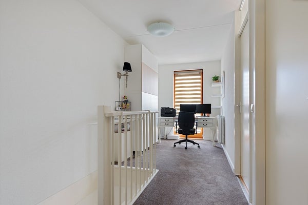 De overloop geeft toegang tot twee ruime, goed indeelbare slaapkamers, alle met rechte wanden en grote ramen die zorgen voor een prettige lichtinval. Op deze verdieping ligt een laminaatvloer, en de kamers lenen zich uitstekend als hoofdslaapkamer, kinderkamer of werkruimte.