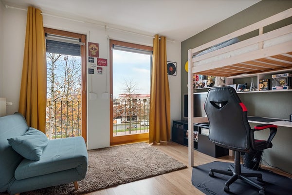 Een enorm ruime eengezinswoning met vier slaapkamers, volledig isolatiepakket, houten kozijnen met dubbel glas en een zonnige achtertuin op het zuidwesten. Deze tussenwoning aan de Zanddreef 30 in Eindhoven ligt in de jonge, kindvriendelijke wijk Meerhoven, op korte afstand van supermarkten, scholen, bushalte en park.