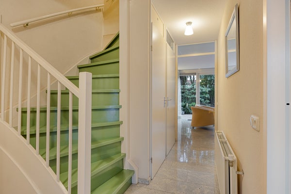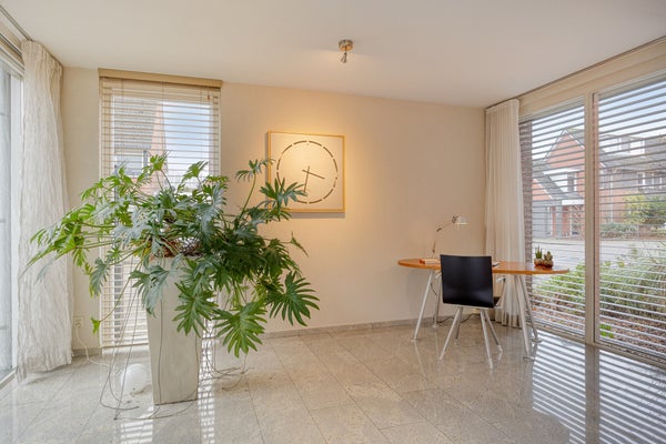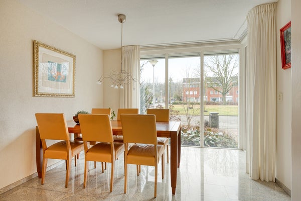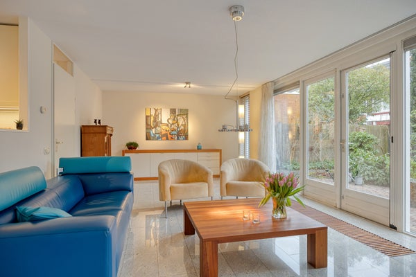Het ruime zitgedeelte ligt aan de achterzijde en is uitgevoerd met grote ramen, een convectorput en dubbel openslaande deuren naar de tuin. De extra tuinkamer aan de zijkant van de woning zorgt voor veel lichtinval en een aangename ruimtelijkheid; een heerlijke plek om te ontspannen en het hele jaar door te genieten van het groen om je heen.