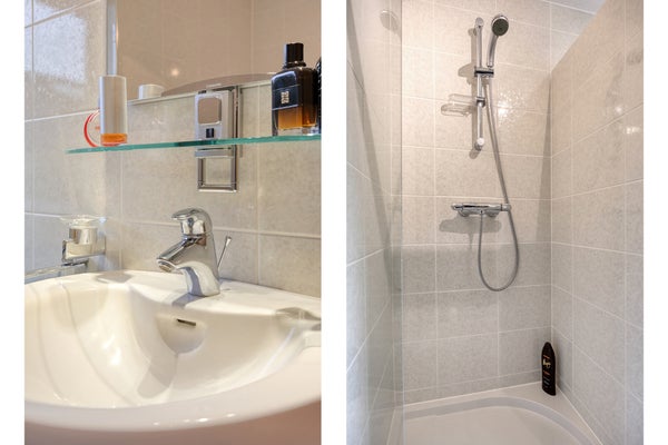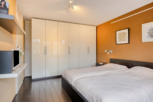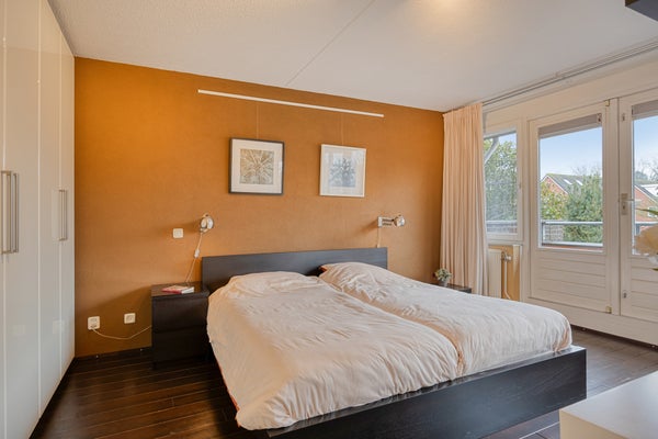 De overloop geeft toegang tot 3 ruime en lichte slaapkamers, een separaat toilet met fonteintje en de badkamer. De royale ouderslaapkamer aan de voorzijde beschikt over dubbel openslaande deuren naar een breed balkon op het zonnige zuidwesten, met een prachtig vrij uitzicht. En de volledig betegelde badkamer is compleet uitgevoerd met een wastafel, douchecabine, ligbad met handdouche en een raam dat zorgt voor natuurlijke ventilatie en prettig daglicht.