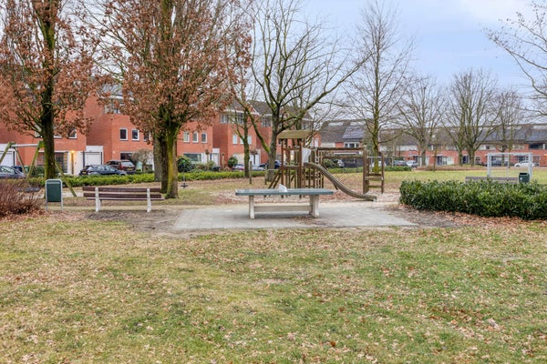 - Vrij uitzicht aan de voorzijde op groenvoorziening met speelveld;