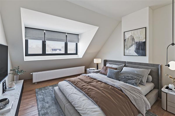 De eerste verdieping verrast met twee ruime slaapkamers en een derde kamer die is ingericht als badkamer. Ideaal voor het creëren van een fijne, praktische indeling zonder concessies te doen op ruimte. Als extra heeft deze verdieping een separaat toilet. De vaste trap naar zolder leidt naar de voorzolder en een royale derde slaapkamer. De dakkapel zorgt hier niet alleen voor extra ruimte, maar ook voor veel daglicht; een perfecte master bedroom of hobby-/werkruimte.