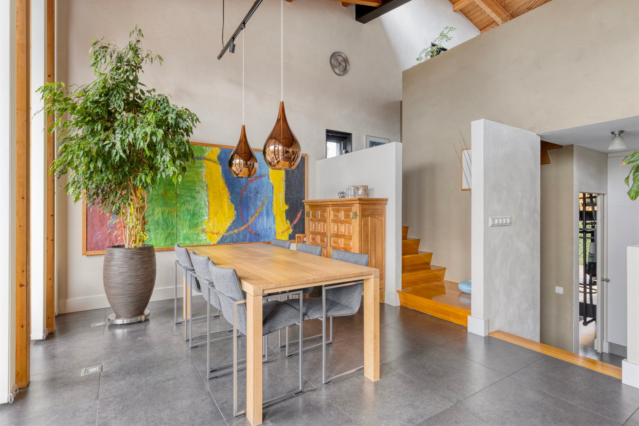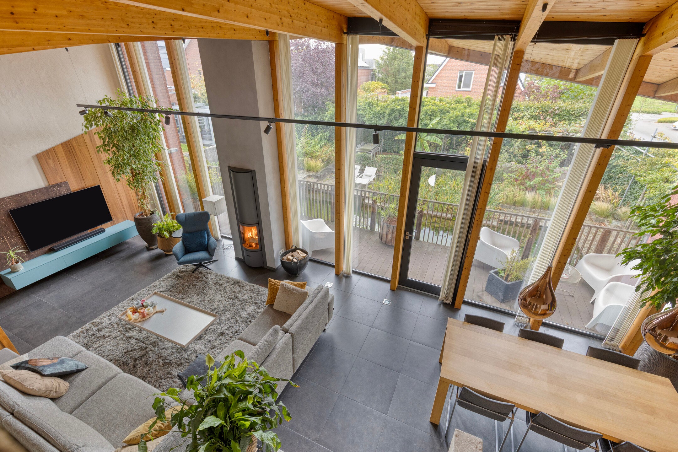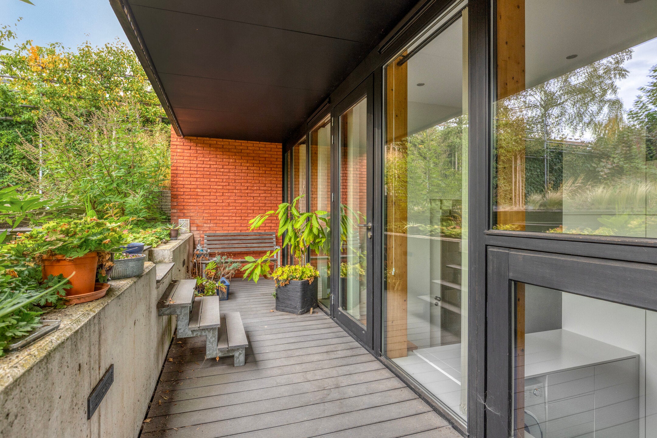 Deze unieke vrijstaande woning in Grasrijk (Meerhoven) weerspiegelt moderne architectuur waarbij de speelse indeling en natuurlijke materialen samenkomen. Binnenkomend via de stijlvolle entree bereik je de ruime leefkeuken, compleet uitgerust met hoogwaardige apparatuur en een kookeiland. De woonkamer, gelegen op een hoger niveau, biedt een prachtig uitzicht op de tuin met zwemvijver en beschikt over een houtkachel. Boven de keuken bevindt zich een lichte study, die eenvoudig omgebouwd kan worden tot slaapkamers. Op de benedenverdieping ligt de masterbedroom met wellness-badkamer inclusief sauna en directe toegang tot de tuin. De tuin, perfect georiënteerd op het zuiden, biedt rust en privacy, omgeven door diverse terrassen. Deze woning ligt nabij winkels, het Meerland park en uitvalswegen, een droomhuis om te genieten van de luxe en ruimte.
