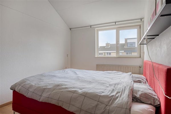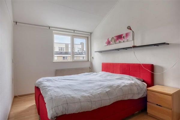 De slaapkamer aan de achterzijde is voorzien van een elektrisch bedienbaar rolluik