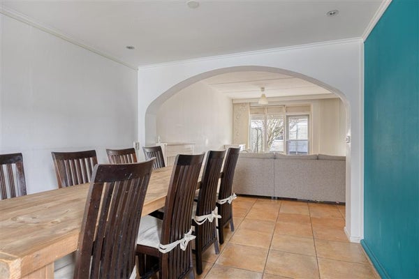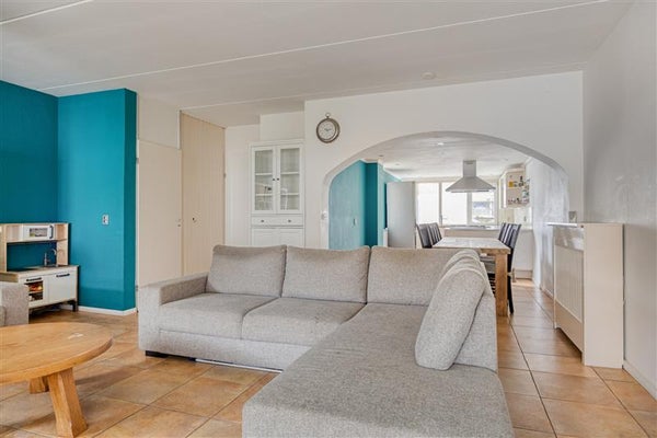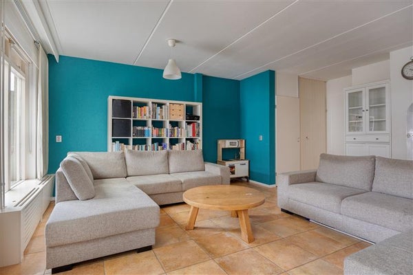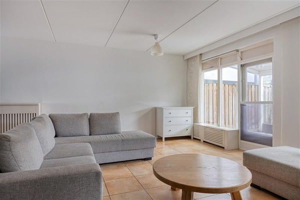 De woonkamer is licht en prettig van formaat, met een grote raampartij aan de achterzijde en directe toegang tot de tuin. De ruimte is afgewerkt met een tegelvloer, nette wanden en een strak plafond. Dankzij de rechthoekige indeling is de woonkamer flexibel in te richten, met ruimte voor een zitgedeelte, eethoek en eventueel een werk- of speelhoek.