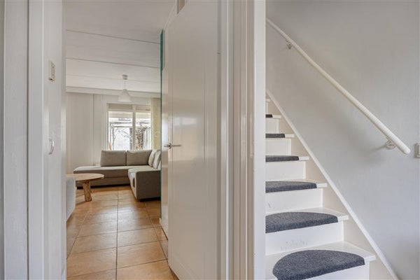 In de trapkast bevindt zich praktische bergruimte voor huishoudelijke spullen.