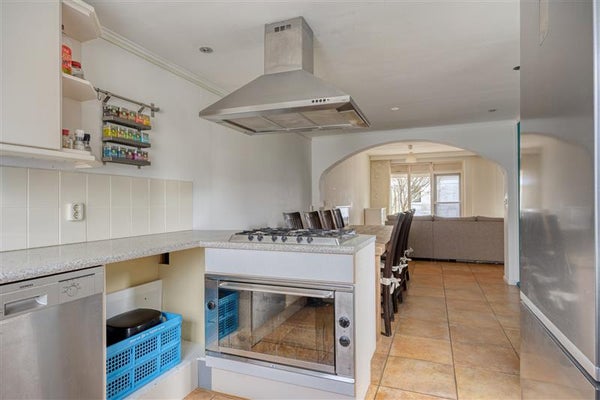 De halfopen keuken is aan de voorzijde van de woning gesitueerd. Door de open verbinding met de woonkamer blijft het contact met gezin of gasten behouden. De keuken beschikt over ruime kastruimte en diverse inbouwapparatuur, waaronder een 6-pits gasfornuis, oven, vaatwasser, 1,5 spoelbak, afzuigkap en boven- en onderkasten. De opstelling biedt prettig veel werkruimte en leent zich uitstekend voor dagelijks gebruik en samen koken.