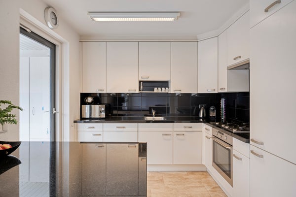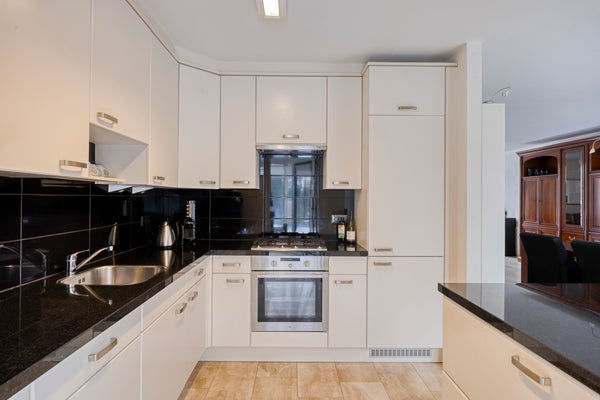 - Open keuken met granieten werkblad en complete inbouwapparatuur;