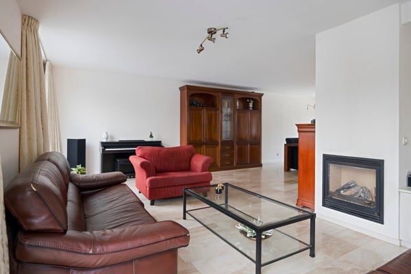 - Riante L-vormige living met sfeervolle gashaard en schuifpui naar tuin;