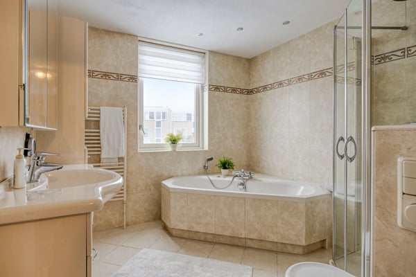 - Moderne badkamer met ligbad, jetstreams en regendouche;