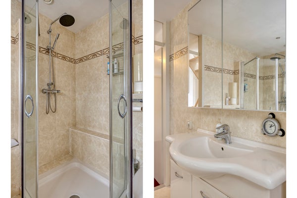 Op de eerste verdieping bevinden zich drie slaapkamers, waarvan één met een charmant Frans balkon. De ruime en lichte badkamer is compleet uitgerust met een ligbad met jetstreams en handdouche, een wastafelmeubel, een tweede toilet en een douchecabine met regendouche en handdouche.