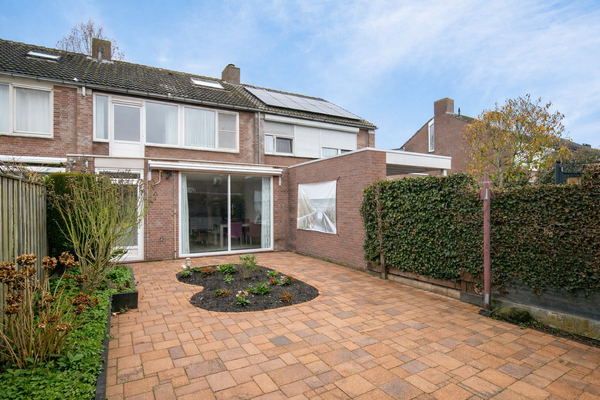 De achtertuin is onderhoudsvriendelijk aangelegd en biedt volop ruimte om meerdere terrassen te creëren. Achter in de tuin bevindt zich de directe toegang tot de eigen garage (ca. 2,80 x 6,16 m), voorzien van een kanteldeur en loopdeur.