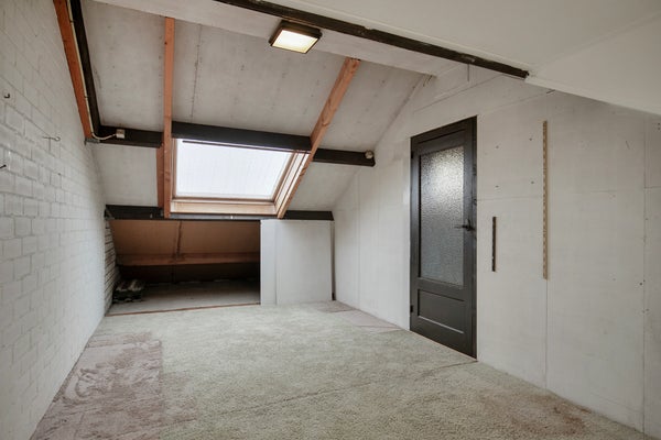Hier bevindt zich de vierde slaapkamer, voorzien van een dakkapel die zorgt voor extra ruimte en licht. Daarnaast is er een separate bergruimte/technische ruimte aanwezig, ideaal voor opslag en witgoedaansluitingen.